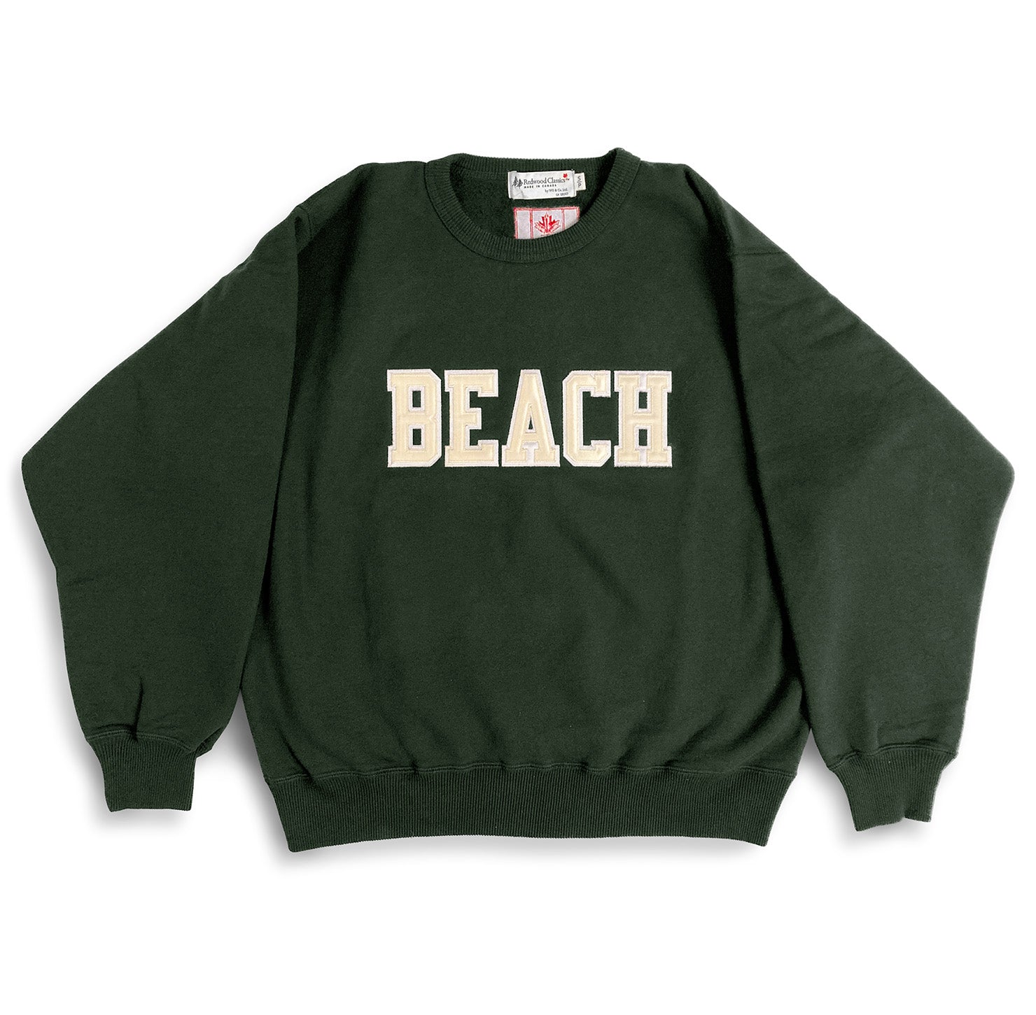 The Beach Sweatshirt Park Green Sweatshirt with Cream BEACH on front and Canadian Flag on back.