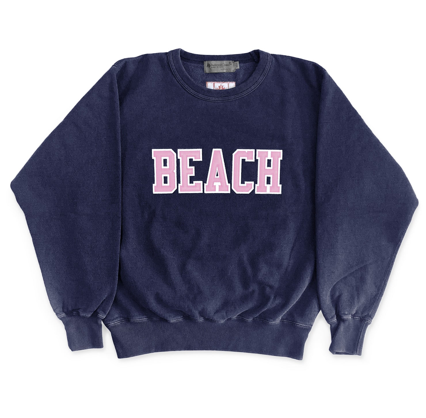 The Beach Sweatshirt Navy Sand Sweatshirt with Pink BEACH on front and Canadian Flag on back.