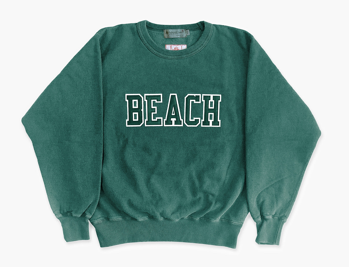 The Beach Sweatshirt Pine Sand Sweatshirt with Green BEACH on front and Canadian Flag on back.