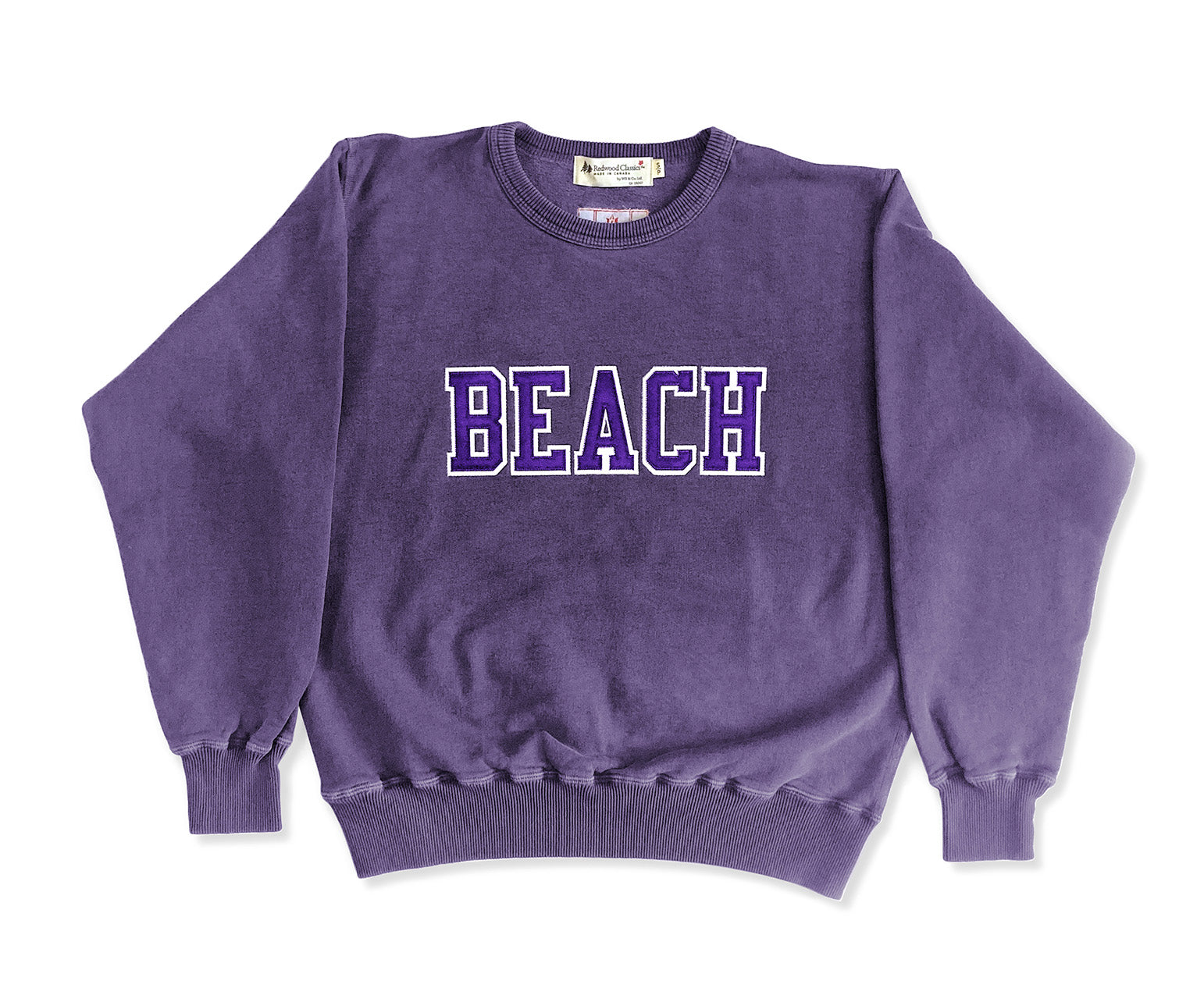 The Beach Sweatshirt Purple Sand Sweatshirt with Purple BEACH on front and Canadian Flag on back.