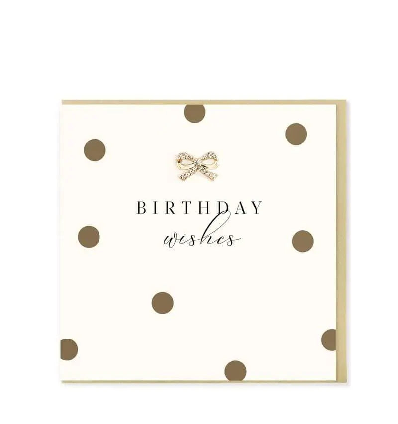 Printed on cardstock, with gold foil details and embellished with a diamante bow.