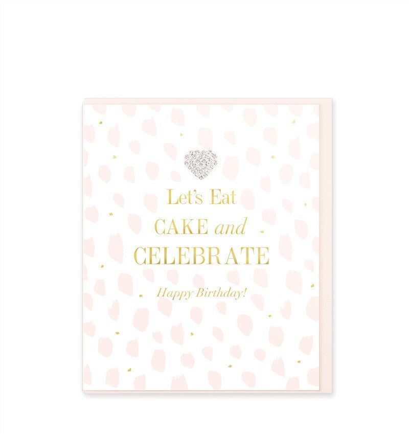 Printed on cardstock, with gold foil details and embellished with a diamante jewel.