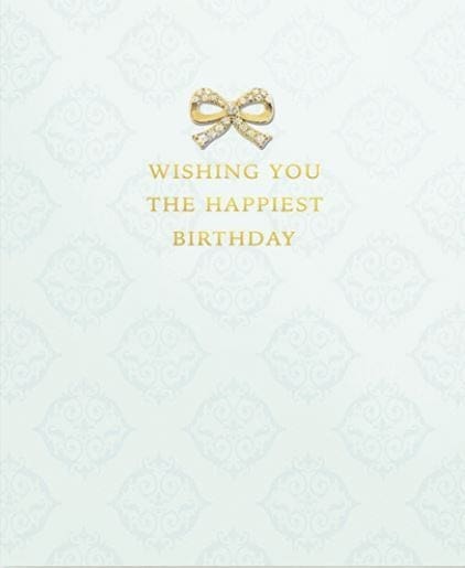 Printed on cardstock, with gold foil details and embellished with a diamante jewel.
